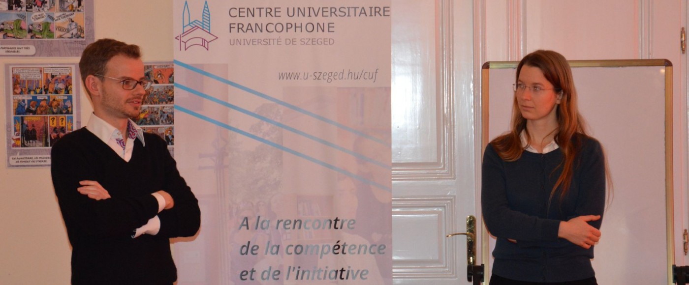 Dans le cadre de l’initiative « Le coup de cœur de l’ambassadeur », Marie-France André, ambassadeur du Royaume de Belgique, et Jean-François Paroz, ambassadeur de la Confédération Helvétique, ont animé le 9 février 2016 une conférence-débat, avec la participation des étudiants des formations francophones de l’Université de Szeged.